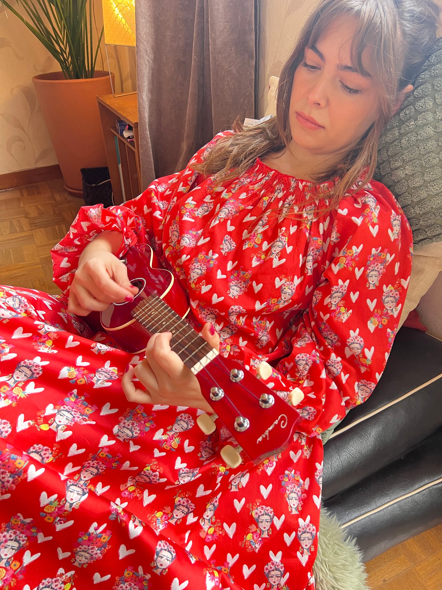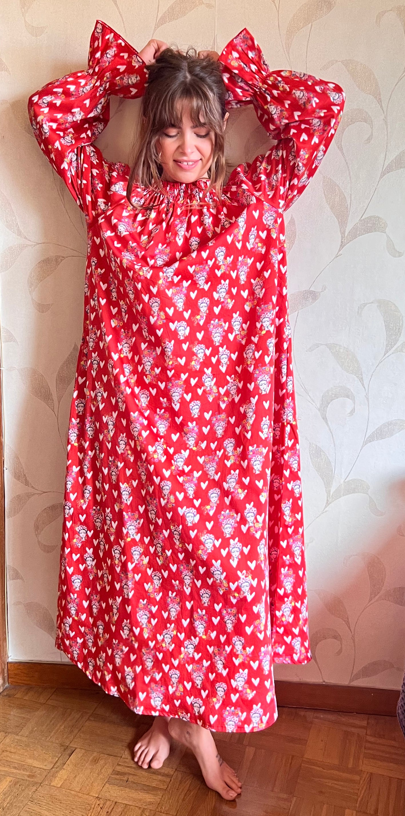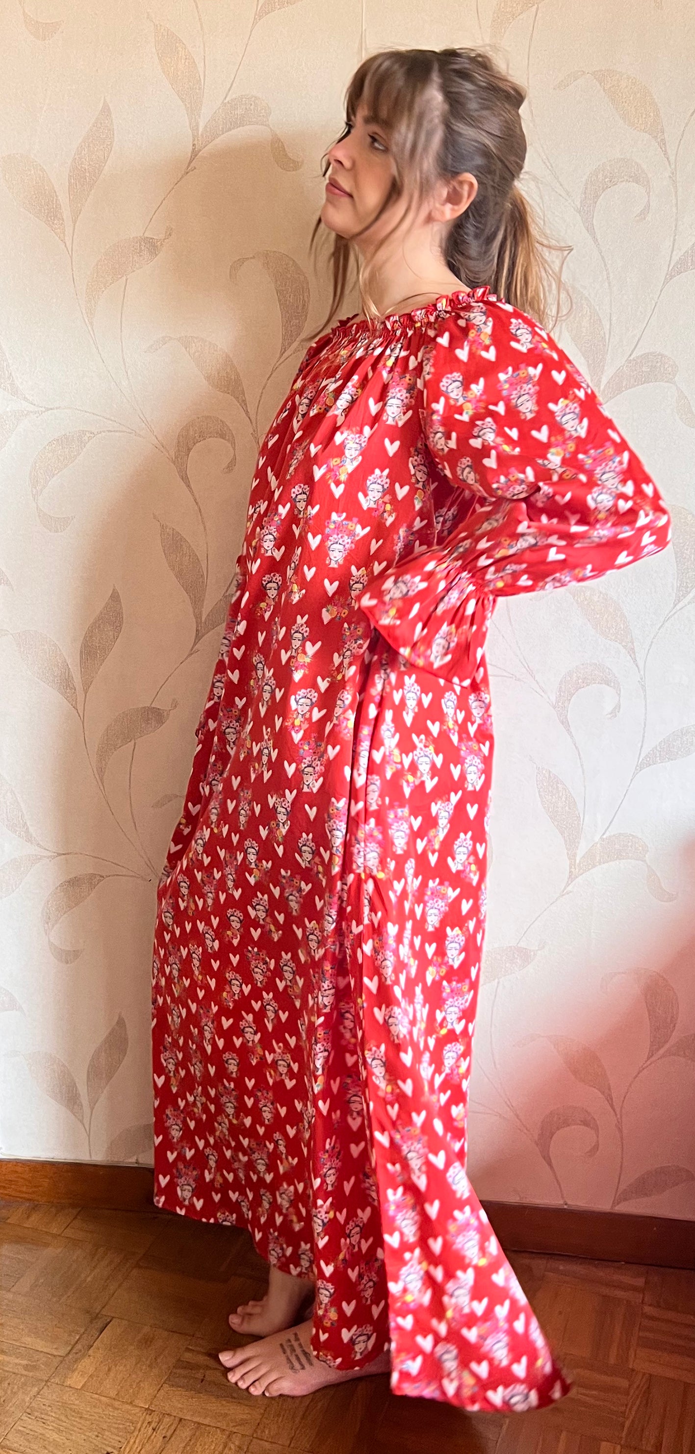 Camison largo con bolsillos, Escote barco y mangas fruncidas. Incluye bolsa de tela para viaje.