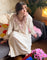 Camison largo con bolsillos, Escote pico y mangas fruncidas con volantes. Incluye bolsa de tela para viaje.