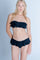 Bandeau bikini with ruffles on top and bottom and metal zipper.