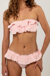 FIT: Swimsuit with a halter neck and open back. Ruffles at the chest and waist naturally shape your silhouette.