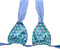 Triangle top in geometric fabric with ties in blue cotton muslin.