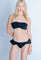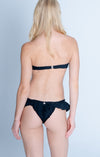 Bikini bandeau con volantes en top y braga con cierre metálico.